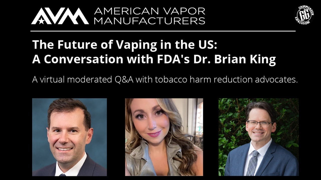 Anunciado como “O futuro do vaping nos EUA: uma conversa com o Dr. Brian King da FDA”, o evento foi organizado pela American Vapor Manufacturers Association (AVM) e moderado pela vice-presidente da AVM, Allison Boughner e por Gregory Conley, diretor de Legislativo e Assuntos Externos.